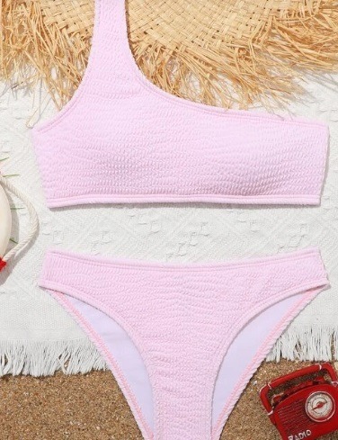 No nos movemos de Shein, porque aquí de todo y todos los diseños imaginables. Como este bikini para adolescente de un solo hombro. Hasta en cuatro colores entre los que están el negro, el rosa pálido que ves en la foto, el naranja y el agua verde azul.