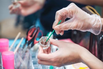 Antes de manipular la henna, colócate guantes de látex. Créenos, lo agradecerás, porque la henna mancha y colorea allá donde cae. En un recipiente, mezcla dos cucharadas de henna con 10 gotas de zumos de limón. Remueve bien hasta que quede una masa espesa.