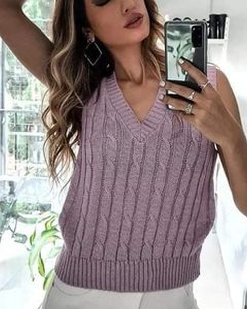 Junto con los de cuadros, los chalecos trenzados son todo un clásico. Pregúntale a tu madre y abuela cuántos chalecos de estos han vestido o incluso han confeccionado para toda la familia. Combínalo como quieras, por ejemplo, con pantalones.