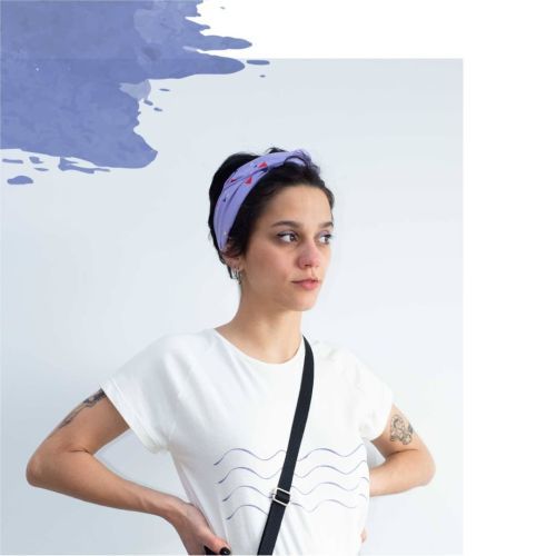 Otra graciosa manera de llevar el turbante o pañuelo en el pelo es colocarlo sobre la frente. Tú misma puedes valorar el ancho que le quieres dar al pañuelo, pudiendo dejarlo tan solo tapando parte de la frente, o abarcando también parte de tu cabeza y de tu pelo como la muchacha de la fotografía.