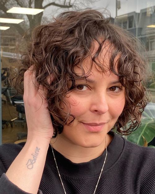 Pelo corto rizado con flequillo