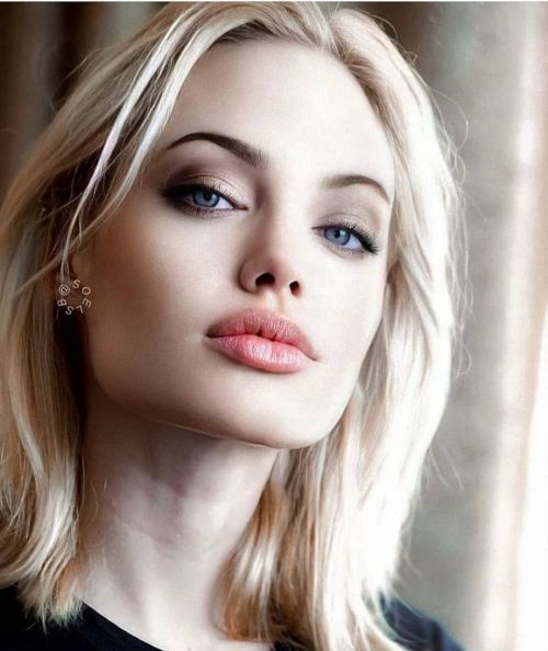 El look de Angelina Jolie nos muestra una melena por los hombros en intenso color rubio y con un flequillo escalado que peinamos a los lados, integrando con la propia melena.