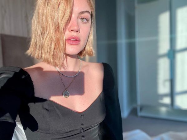 Una melena por los hombros en corte recto es el que hace verse tan guapa a Lucy Hale en esta fotografía. Con ondas arriba y con melena lisa abajo.