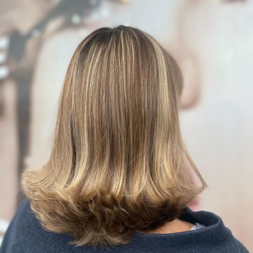Una media melena con corte recto y puntas hacia arriba.
