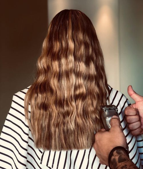 Sin olvidarnos de la iluminación, te mostramos este cabello largo de corte recto con mechas rubias.