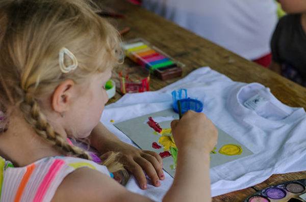 Lo único que tenemos que hacer es coger una vieja camiseta de papá (a poder ser que sea clara o blanca) y haz que tus hijos dejen huellas pequeñas o estampen sus manos; use pinturas para los dedos (no son tóxicas y son adecuadas para usar con las manos, no uses las temperas clásico para este propósito).