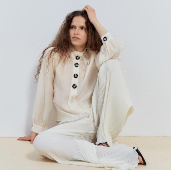 Lo mismo ocurre con el pantalón fluido ancho, combinado con una camiseta también blanca.