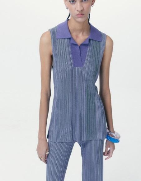 El conjunto de top y pantalón a rayas es adecuado también para asistir como invitada a una comunión.