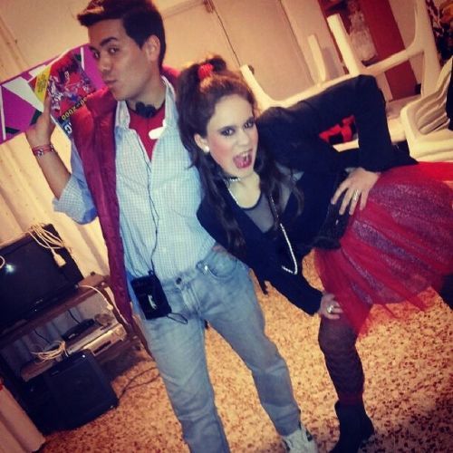Fijaos en la imagen. En vuestros looks no pueden faltar las medias llamativas, ya sean con estampados, diseños o colores que capten la atención de cualquiera. También podéis optar por unos leggins de bordados o rayas. Los looks sencillos son para dejarlos para otro día, pues la moda de los 80 es para apostar por algo más atrevido.