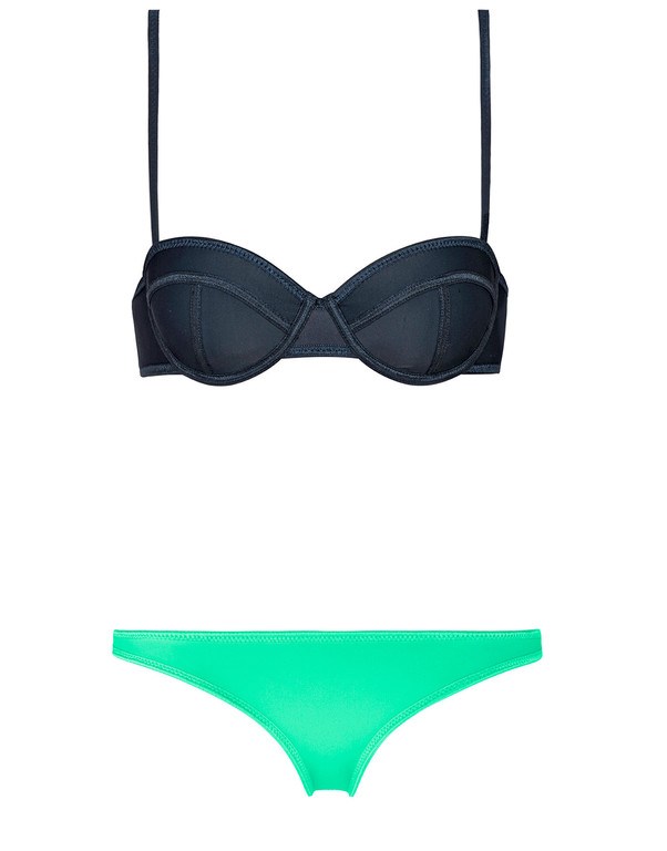 En el caso de Oysho encontramos modelos como el que veis arriba, en acertado cuello verde y que además de contener un top balconette, cuenta con una braguita que en los laterales cuenta con dos oberturas.