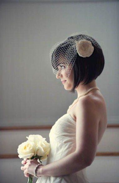 Un corte más que adecuado para lucir un tocado con rejilla, ya que además de potenciar el atractivo del tocado, complementa a la perfección un look divertido y actual. Si además lo acompañas con un vestido corto, el efecto será impresionante.