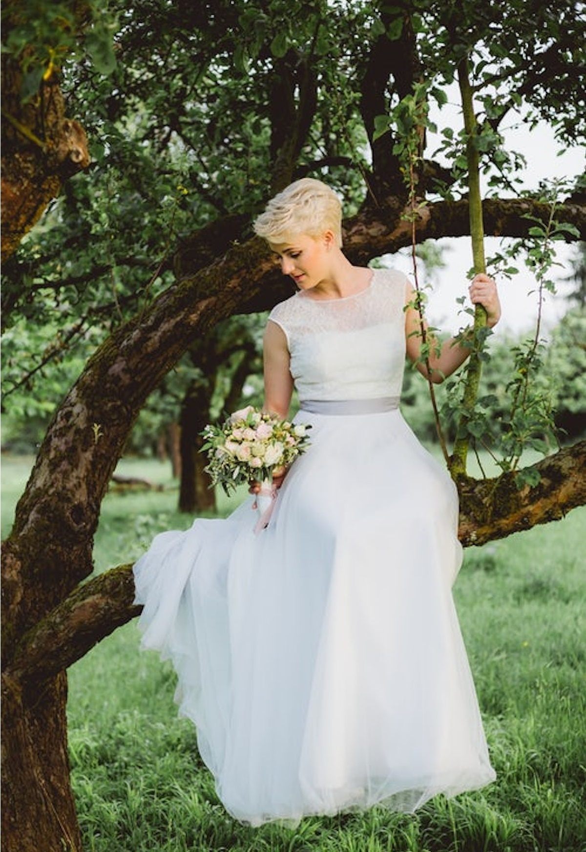 Si eres una mujer urbanita a la que le gusta seguir los cánones de la moda, sin duda un corte bob cortito en la nuca será una de tus elecciones preferidas. En este caso, lucir un corte bob a doble capa ha sido la solución perfecta para una novia actual y contemporánea.