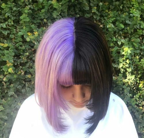 Colorea la mitad de tu melena de un color y la otra mitad de color diferente, ya sea de un lado, o de arriba abajo (es decir, en horizontal o en vertical). Sepárate varios mechones y alterna colores; pinta tu flequillo de un color y el resto del cabello de otro; reserva una tonalidad para las puntas diferente del resto del pelo; etc. Tú decides. E incluso puedes usar la dualidad de colores exclusivamente para el flequillo.