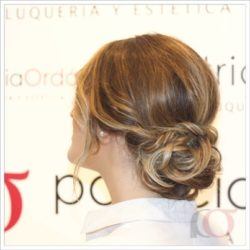 En esta otra foto que vemos arriba podéis ver lo bien que queda un recogido despeinado también por detrás. Un sencillo recogido bajo que deja unos cuantos mechones sueltos a los lados, para montar luego sobre el recogido. Un bonito peinado que podemos hacernos para ir a trabajar por ejemplo, pero que sería también perfecto para una novia que desee un peinado cómodo y con cierto aire “boho”.
