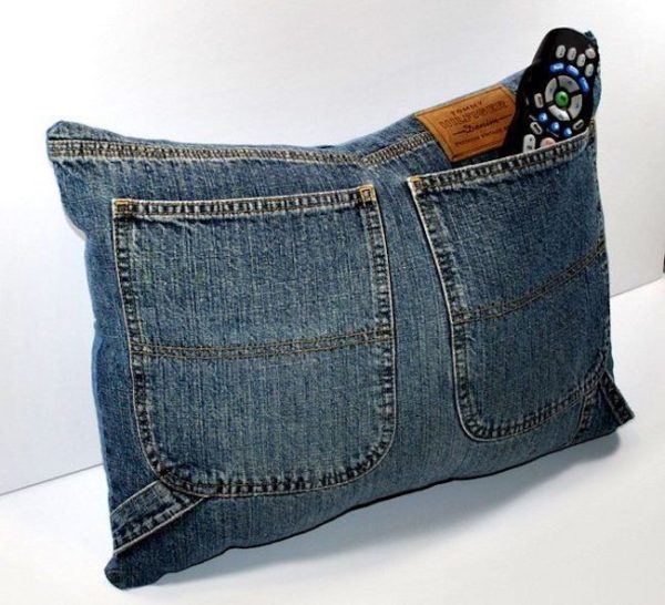 La idea es usar jeans viejos, cortar las piernas y coser sobre un cojín normal.