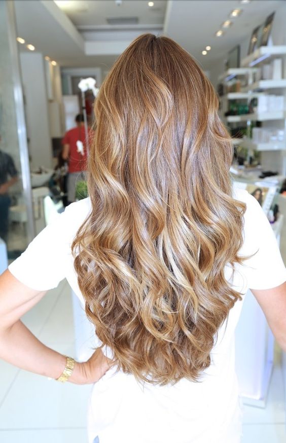 Muchísimas famosas, tanto modelos como actrices, llevan escogiendo mucho tiempo el tono rubio caramelo para su cabello. Es un color que los estilistas definen como un tono que está entre un castaño dorado y un rubio beige, que emula a la dulzura ya desde su nombre y que queda bien con el pelo largo, como vemos en la foto a continuación, con una media melena o también si eliges un corte de pelo corto.