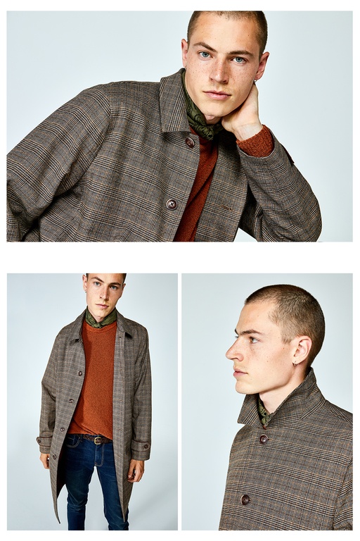 Comenzamos también por los abrigos, con propuestas variadas entre las que destacan por ejemplo el abrigo de cuadros, con diseño muy de “sport”.