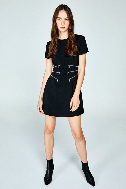 Quizás la chaqueta de cremalleras era mucho para ti. ¿Qué tal esta variante en vestido de cremalleras negro? Mucho más juvenil, desenfadado y moderno. Lo tienes en el catálogo Sfera Primavera Verano por 39,99 euros.