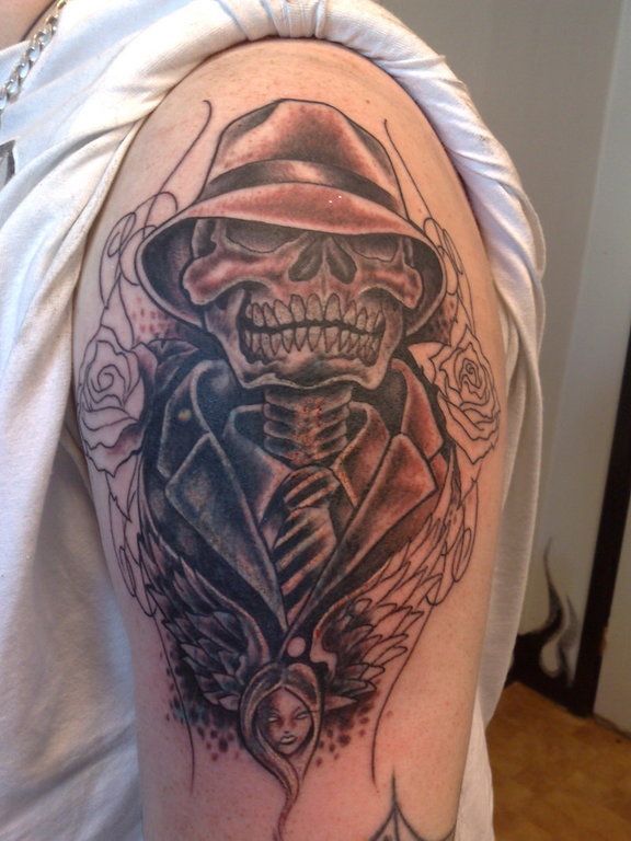 Por otro lado y aunque los tatuajes chicanos vistos hasta la fecha son en blanco y negro, podemos decantarnos también por aquellos que son a todo color y de este modo, hacer que resalten más. Es el caso del diseño de catrina que podéis ver a continuación, con colores como el rojo, el azul, y combinando sombras para darle más realismo.