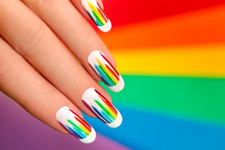 El primer ejemplo que te mostramos se trata simplemente de pintar las uñas con una manicura francesa pero con colores vivos y vibrantes por lo que busca los pintauñas más coloridos. Por otro lado, para darle un toque festivo más definitivo, puede añadirle a tus uñas carnaval unas piedras brillantes que le darán un estilo mucho más original y llamativo.