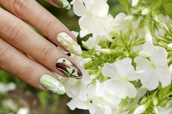 El verde también es aceptable en la gama de pasteles para color de uñas de porcelana.