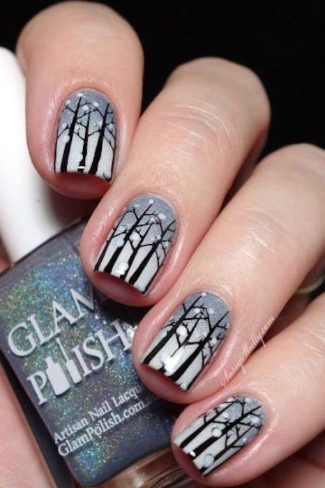 Las uñas grises 2020 se pueden combinar además con la tendencia del esmalte glitter. De este modo lograréis que un diseño de uñas que es de por sí apagado, cobre un brillo especial gracias al uso del esmalte de purpurina como este que os mostramos a continuación: