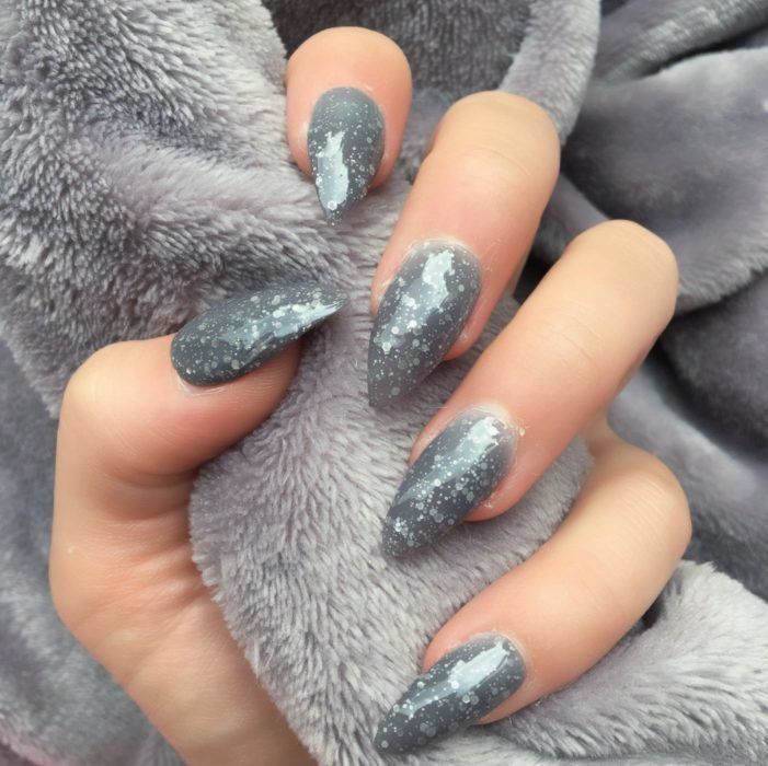 O directamente, nos podemos decantar por un diseño de uña grises 2020 con un esmalte de acabado glitter como este que vemos a continuación, que no necesitará más decoración o detalle.