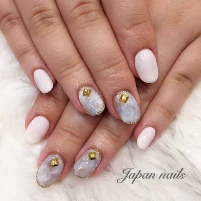 Otro de los colores que podéis elegir para vuestras uñas grises 2020, es el color blanco, que de hecho, se ha convertido en un color que marca tendencia este año. De este modo, podréis conseguir una manicura de uñas que se vea elegante como en la propuesta que vemos a continuación, ideal para ocasiones especiales.