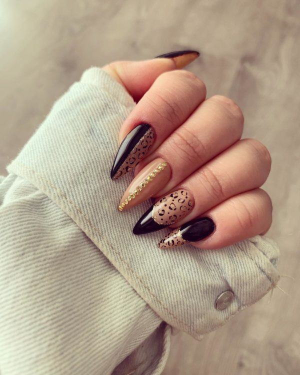 Entre las tendencias para las uñas permanentes 2020, podemos decantarnos también por el estilo de animal print, que de hecho arrasa en el mundo de la moda. De este modo, podemos elegir un diseño como el que os mostramos a continuación, en el que el estampado de leopardo, se combina además con un color negro y también porqué no, un detalle dorado.