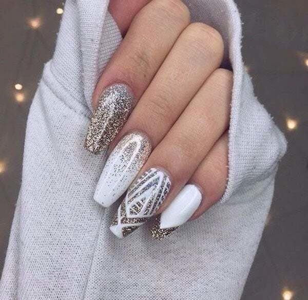 O podemos elegir también un diseño de uñas plateadas 2020 que no sea tan llamativo. En este sentido, podéis elegir un diseño como el que veis a continuación con una base plateada y dibujos gráficos como este que os dejamos a continuación.