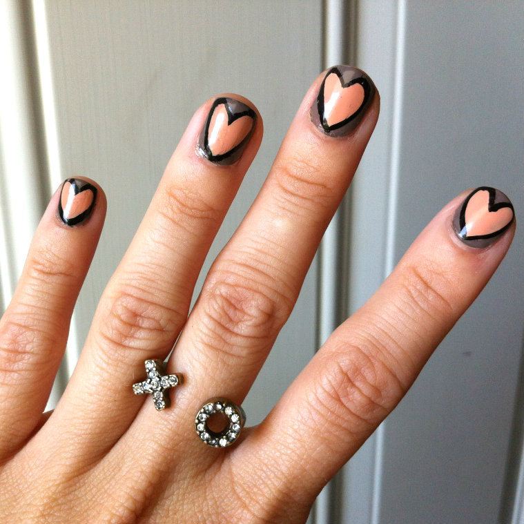 También nos podemos decantar por un diseño minimalista tan bonito como este que vemos a continuación, con una base en un tono nude y el dibujo de un solo corazón en negro. Un diseño ideal para una cita romántica de San Valentín.