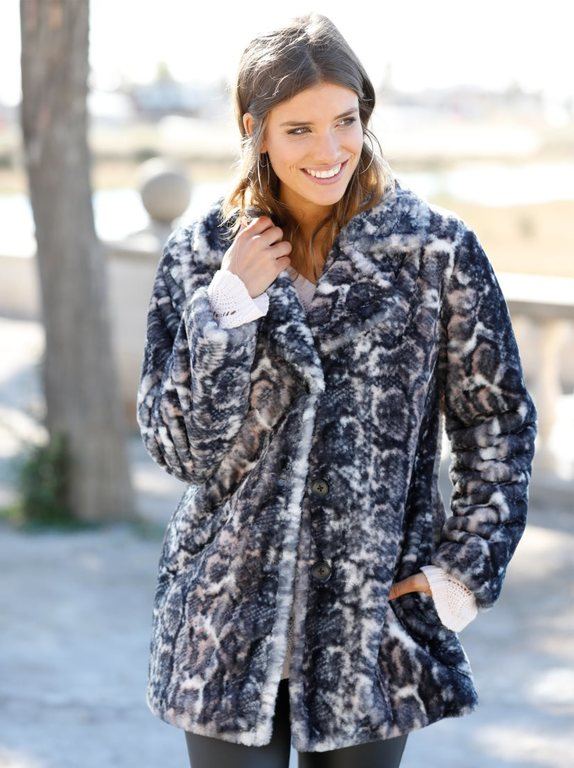 Por otro lado, nos encontramos también con propuestas de abrigos que destacan por diseños llamativos. Es el caso del abrigo, con estampado de cuadros y cuello de solapa con “animal print”.