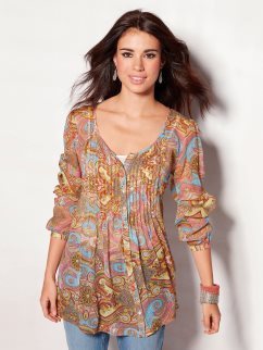 En cuanto a las camisas y blusas, Venca se decanta por modelos variados y con estampado llamativos, tal y como vemos en este modelo de cordones y borlas.