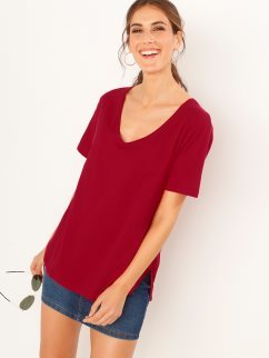 O tenemos diseños de camisetas más básicas, como el modelo que ahora os mostramos en color rojo y con escote de cuello barco.