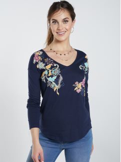 El catálogo de Venca para Invierno 2020 cuenta también con propuestas de camisetas variadas, tal y como es el caso de la camiseta que os mostramos a continuación, con un bonito estampado en los hombros.