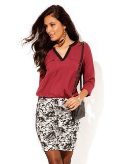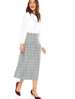 Las faldas son también una de las prendas que no pueden faltar dentro del catálogo de Venca para Invierno 2020, con modelos como la falda a continuación de diseño “midi” y con estampado de cuadros.