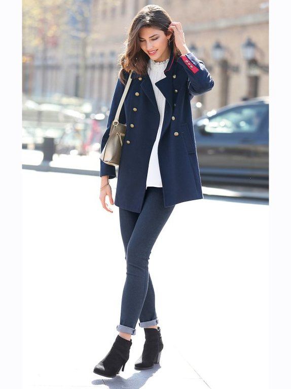 Por otro lado, tenemos también la opción de elegir jerséis que sean de cuello alto. Modelos como el que veis en la imagen, en uno de los colores de moda esta temporada como es el caso del azul marino.