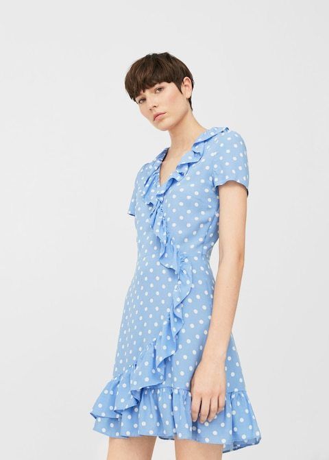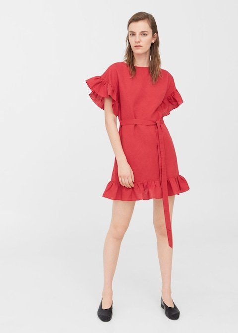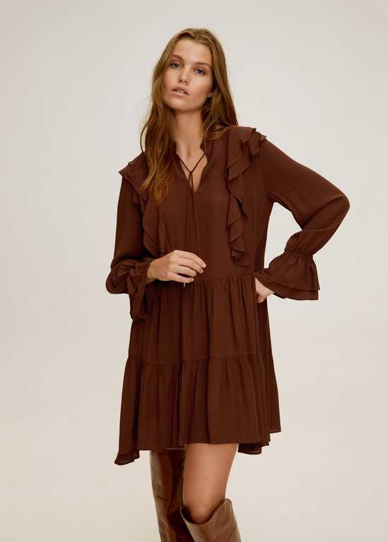 Comenzamos por los que son vestidos de fiesta cortos que parecen imponerse esta temporada. De este modo, los Vestidos de fiesta Mango Primavera Verano cuentan con modelos como el vestido corto que os mostramos a continuación, que destaca por el detalle de los volantes, que son ahora tendencia y ese bonito color marrón.