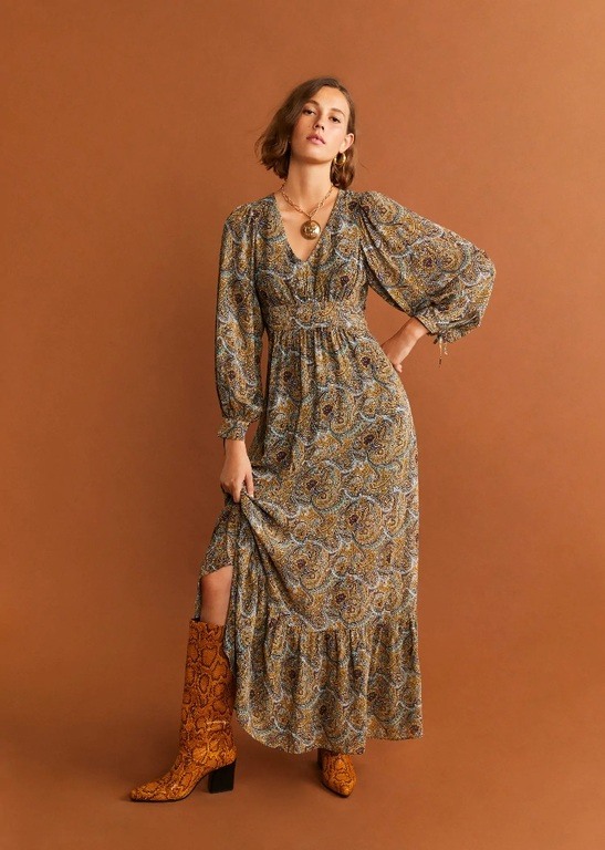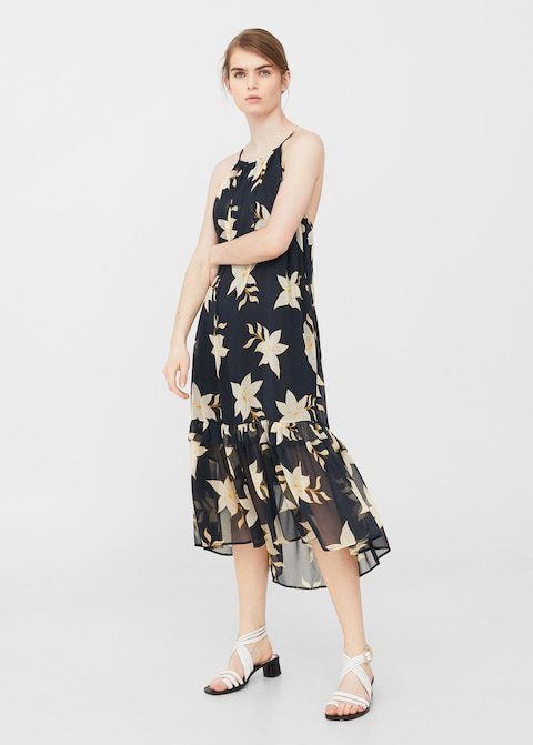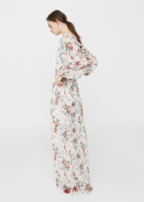 Los vestidos largos de fiesta son también imprescindibles esta temporada, de modo que podemos encontrar distintos diseños entre las nuevas propuestas de vestidos de Mango Primavera Verano, destacando sobre todo, modelos como este vestido que podéis ver a continuación, con un bonito estilo “campestre”, tal y como marcan las últimas tendencias, ideal para ocasiones especiales.