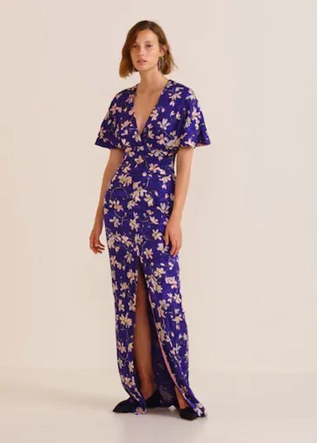 Por otro lado, el vestido largo de fiesta de flores, se ha impuesto mucho esta temporada de primavera verano, y parece que de nuevo vuelve con fuerza para la temporada de Otoño Invierno, para modelos como este que nos presenta Mango en acertados tonos azulados.