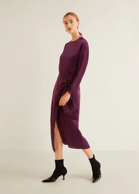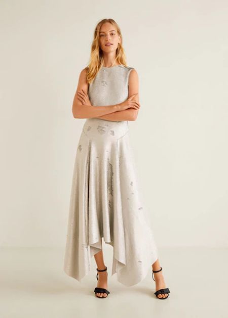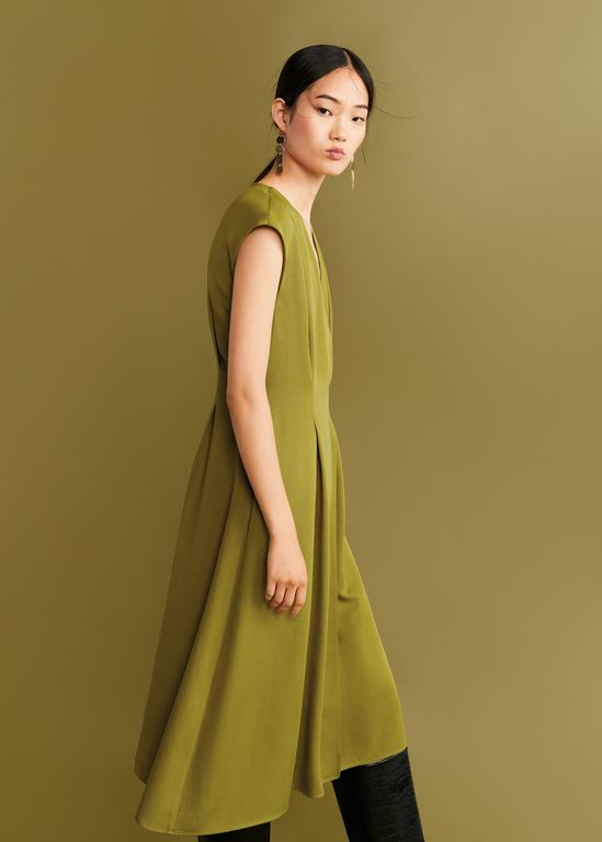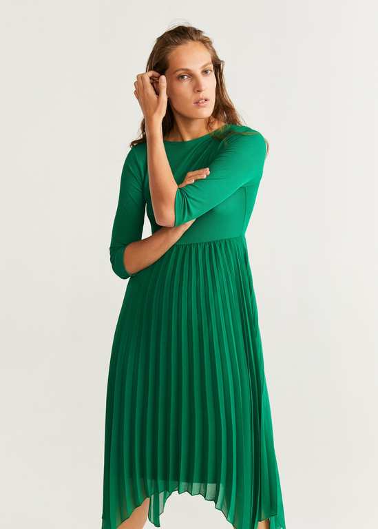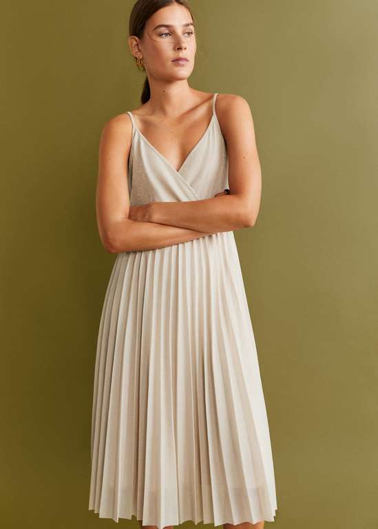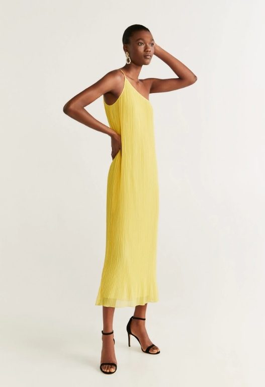 O podemos elegir también un bonito vestido de fiesta para salir de noche, como el modelo que Mango nos presenta a continuación, con diseño asimétrico y bonito plisado.
