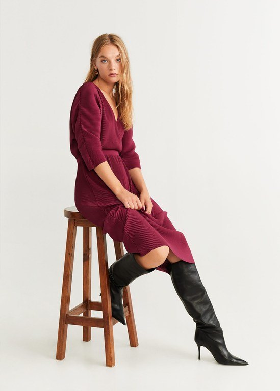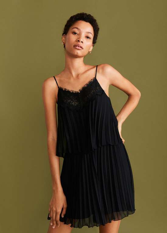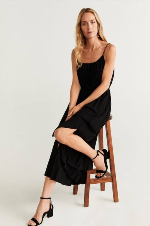 Como hemos visto, los vestidos de fiesta que parecen diseñados para la noche, parece que se imponen, pero eso no quiere decir que no tengamos modelos también indicados para el día. Es el caso del vestido que veis a continuación, un vestido que Mango nos presenta en color negro y detalle plisado. Perfecto y elegante para cualquier evento de día.