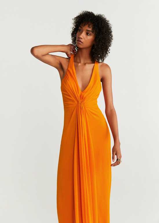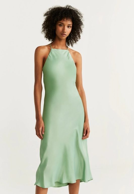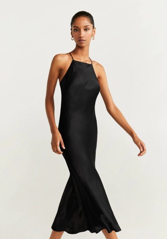 Otro de los modelos de vestidos de fiesta para la noche de Mango es este que os mostramos a continuación, un bonito vestido que cuenta con detalle de cuello halter, una tendencia que vuelve con mucha fuerza para esta temporada.