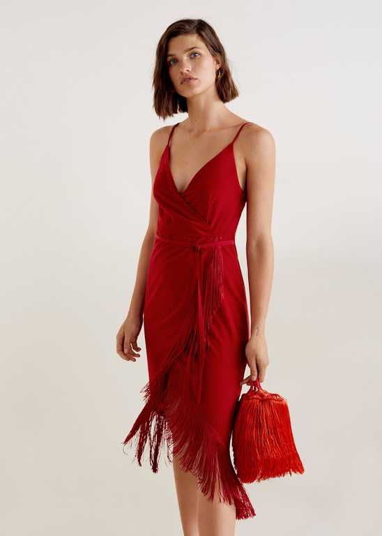 Si buscas un bonito vestido de fiesta para esta temporada, nada como elegir entonces, alguno de los vestidos de fiesta midi de Mango para Primavera Verano si bien la firma apuesta a lo grande por este tipo de corte. De este modo, podemos encontrarnos con modelos midi que son realmente variados. Para empezar, nos decantamos por el modelo de vestido que veis a continuación, con un bonito color rojo y un detalle de flecos que nos encanta.