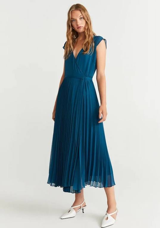 Y para los que queráis un vestido que sea elegante y que os permita lucir espectaculares en cualquier ocasión especial de esta temporada, nada como elegir el modelo de vestido que vemos a continuación. Un bonito vestido plisado, que además se presenta en un acertado color azul.
