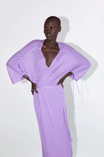 Comenzamos como no, hablando de los Vestidos de fiesta Zara Primavera Verano que son con un diseño largo, quizás pensando en las grandes celebraciones de la temporada como la Navidad. De este modo, os mostramos este primer vestido, que cuenta con un bonito diseño cruzado, con escote en pico y atención, en color lila, uno de los tonos que no os pueden faltar esta temporada de Primavera Verano.