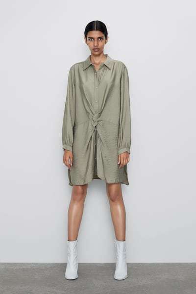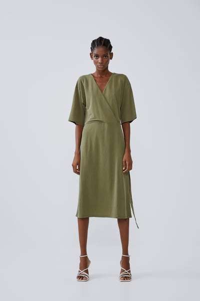Más adelante os hablaremos también de los vestidos de fiesta de Zara que son de volantes, pero de forma especial os queremos mostrar este, en color khaki, ya que ciertamente, nos parece perfecto para asistir a una boda.