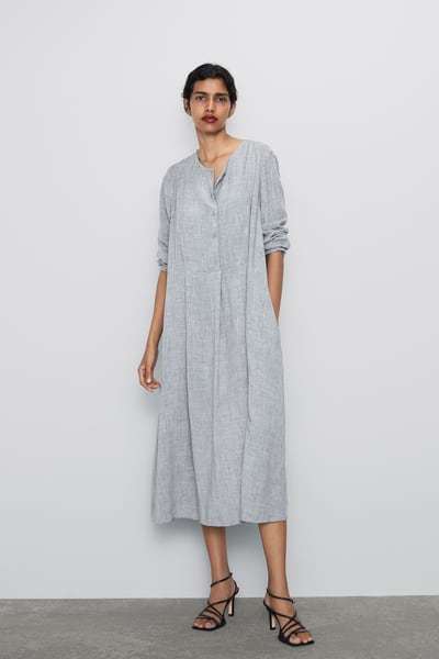 Zara es una firma que apuesta por diseñar ropa para todas las tallas, de modo que también podemos encontrar vestidos para tallas grandes entre sus Vestidos de fiesta Zara Primavera Verano con diseños “oversize” como el vestido que podéis ver a continuación, con cuello solapa.