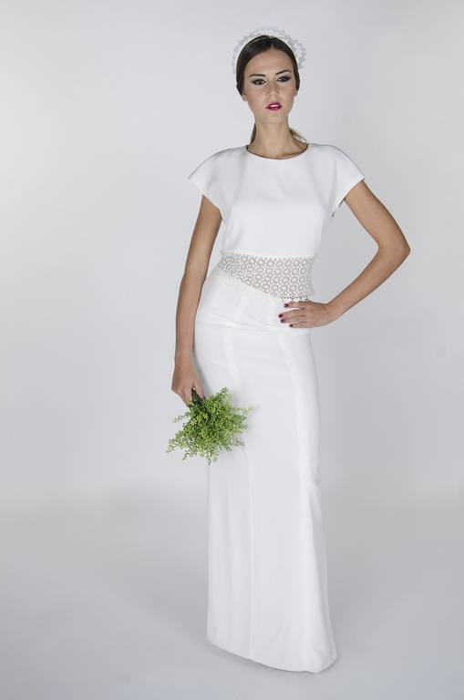 Por ejemplo, el vestido que puedes ver en la fotografía de arriba, no deja de ser un vestido clásico de novia pero, es cierto, que tiene un toque muy sencillo y no está recargado con demasiados detalles.