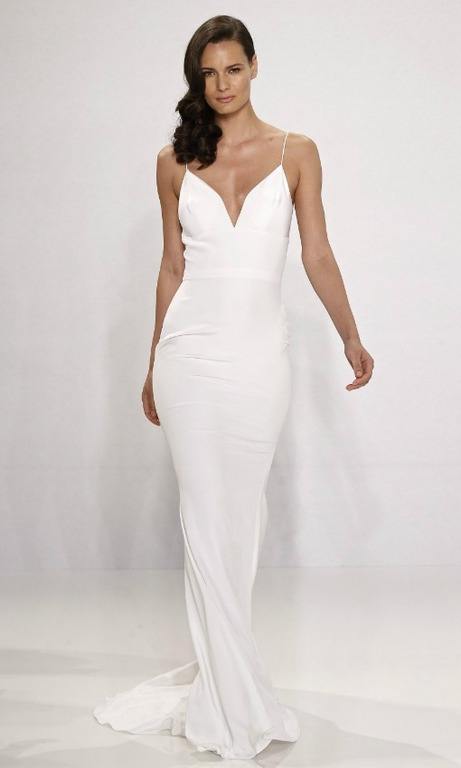 Otro estilo muy diferente, es el de esta fotografía de arriba , que se trata de un vestido de novia totalmente liso pero con un escote pronunciado que hace que se vea perfecto.